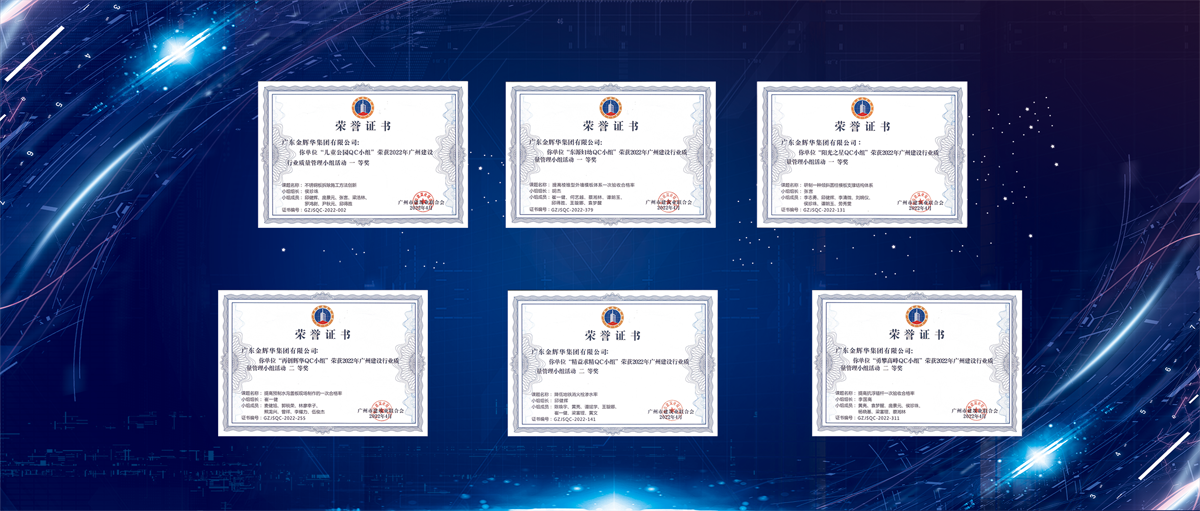 近日,廣州市建筑業(yè)聯(lián)合會發(fā)布了《關于表彰2022年廣州建設行業(yè)優(yōu)秀質量管理小組的通報》,廣東金輝華集團六個QC小組榮獲“2022年廣州建設行業(yè)優(yōu)秀質量管理小組”稱號。