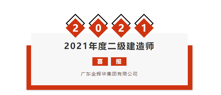 廣東金輝華集團有限公司始終堅持“團結(jié)、敬業(yè)、誠信、創(chuàng)新”的企業(yè)精神,高度重視人才培養(yǎng)工作,積極鼓勵員工參與專業(yè)領(lǐng)域考證,并制定相關(guān)的獎勵制度來激勵員工們積極參與相關(guān)考試,提高員工專業(yè)素養(yǎng)。在此,熱烈祝賀集團公司梁富鏗等34位員工順利取得2021年度二級建造師的執(zhí)業(yè)資格,為公司新添34名項目經(jīng)理。 建造師執(zhí)業(yè)資格證是擔任建筑工程項目經(jīng)理的必備條件。集團公司積極推進員工職業(yè)發(fā)展,并以相關(guān)的