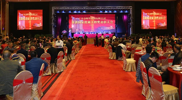 ——記廣東金輝華集團(tuán)有限公司榮獲國(guó)家優(yōu)質(zhì)工程獎(jiǎng)表彰大會(huì)廣東金輝華集團(tuán)有限公司榮獲國(guó)家優(yōu)質(zhì)工程獎(jiǎng)表彰大會(huì)現(xiàn)場(chǎng)1月5日下午,金輝華集團(tuán)在江門金凱悅酒店,舉行榮獲國(guó)家優(yōu)質(zhì)工程獎(jiǎng)表彰大會(huì),慶祝集團(tuán)公司承建的江門市中心醫(yī)院外科住院大樓工程和臺(tái)山市體育館及人防工程榮獲2016-2017年度國(guó)家優(yōu)質(zhì)工程獎(jiǎng),并對(duì)有突出貢獻(xiàn)的人員和項(xiàng)目部進(jìn)行了表彰。 廣東金輝華集團(tuán)有限公司榮獲國(guó)家優(yōu)質(zhì)工程獎(jiǎng)表彰大會(huì)主席臺(tái)廣東省建