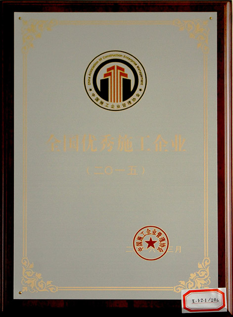 熱烈慶祝我公司榮獲全國優(yōu)秀施工企業(yè)