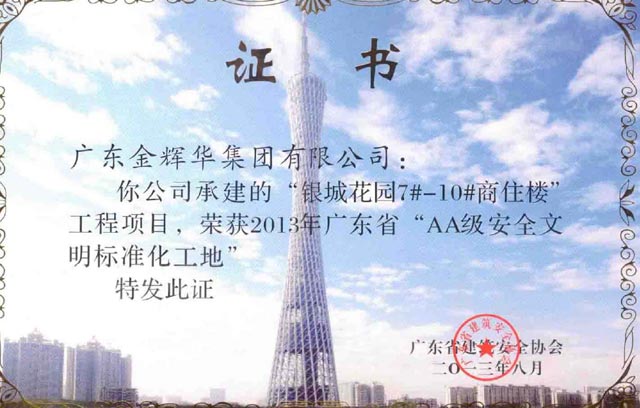 近日,廣東省建筑業(yè)協(xié)會(huì)公布了粵建協(xié)〔2013〕109號(hào)《關(guān)于公布2013年度廣東省建設(shè)工程金匠獎(jiǎng)名單的通知》。我集團(tuán)公司承建的星河路廉租住房和經(jīng)濟(jì)適用住房建設(shè)項(xiàng)目(第一標(biāo)段)工程獲得了該項(xiàng)榮譽(yù)。我集團(tuán)公司將繼續(xù)堅(jiān)持提高項(xiàng)目安全文明意識(shí),強(qiáng)化管理,采取有效措施,加大工程質(zhì)量、安全文明創(chuàng)優(yōu)力度,不斷創(chuàng)造出精品工程。