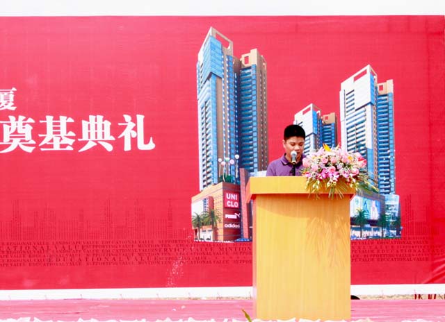 7月27日上午,鑼鼓喧天,喜樂齊鳴,我集團(tuán)公司綜合大廈項(xiàng)目舉行了盛大的奠基儀式。中國僑聯(lián)副主席、廣東省僑聯(lián)主席王榮寶,中紀(jì)委寧鋒鳴,中國建筑業(yè)協(xié)會質(zhì)監(jiān)分會會長吳松勤,廣東省、江門市有關(guān)部門領(lǐng)導(dǎo)、開平市領(lǐng)導(dǎo)黃耀雄、司徒振波、謝超武、莫健文、陳偉成、余榮深、梁和平、馮潤深、林國寧以及集團(tuán)公司董事局主席周珉興、董事長李甫等領(lǐng)導(dǎo)出席了奠基儀式。 開平市住宅與城鄉(xiāng)建設(shè)局局長吳進(jìn)進(jìn)主持奠基典禮集團(tuán)公司董事長李