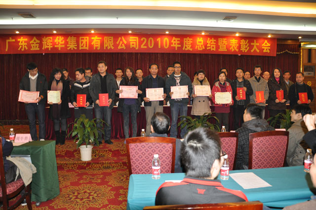 總結(jié)大會(huì)由集團(tuán)副總裁陳維民主持。會(huì)上,集團(tuán)董事長(zhǎng)李甫發(fā)表新年致辭,總裁張國(guó)球作了《金輝華,滿懷豪情再出發(fā)》的2010年終總結(jié)及2011年工作計(jì)劃匯報(bào)講話,重點(diǎn)對(duì)企業(yè)申報(bào)特級(jí)、強(qiáng)化團(tuán)隊(duì)建設(shè)、進(jìn)一步明晰、健全和完善業(yè)務(wù)工作流程和抓緊科研項(xiàng)目實(shí)施,對(duì)2011年生產(chǎn)經(jīng)營(yíng)工作進(jìn)行了安排和部署。黨委書記張解矛和開平國(guó)泰康庭置業(yè)有限公司總經(jīng)理周雪峰分別作了工作發(fā)言。最后,開平市住房和城鄉(xiāng)建設(shè)局局長(zhǎng)吳進(jìn)進(jìn)對(duì)金輝華集團(tuán)一年來(lái)的工作作了肯定、贊揚(yáng)和勉勵(lì),并祝金輝華集團(tuán)在新的一年團(tuán)結(jié)一致,揚(yáng)起創(chuàng)新的風(fēng)帆,在和諧發(fā)展的同時(shí),2011年勝利沖刺特級(jí)資質(zhì)企業(yè)。