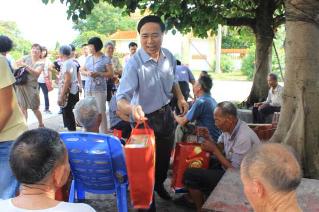 工會主席陳維民向敬老院老人們派發(fā)慰問金