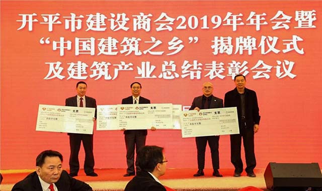 2019年12月27日下午,開平市建設(shè)商會(huì)2019年年會(huì)暨“中國(guó)建筑之鄉(xiāng)”揭牌儀式及建筑產(chǎn)業(yè)總結(jié)表彰大會(huì)召開,中國(guó)建筑業(yè)協(xié)會(huì)副秘書長(zhǎng)景萬,廣東省住房和城鄉(xiāng)建設(shè)廳建筑市場(chǎng)監(jiān)管處處長(zhǎng)羅錦榮,廣東省建筑業(yè)協(xié)會(huì)副秘書長(zhǎng)謝瑞,江門市住房和城鄉(xiāng)建設(shè)局局長(zhǎng)林健生,開平市領(lǐng)導(dǎo)龐正華、鄺積康、張星杰、梁民躍、林國(guó)寧等出席大會(huì),并為“中國(guó)建筑之鄉(xiāng)”揭牌。并對(duì)獲得國(guó)家優(yōu)質(zhì)工程獎(jiǎng)、省級(jí)優(yōu)質(zhì)工程獎(jiǎng)的企業(yè)進(jìn)行頒獎(jiǎng)。