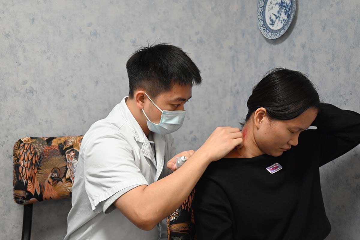 此次活動(dòng)特別邀請(qǐng)了南方醫(yī)科大學(xué)中西醫(yī)院專家為員工們提供一對(duì)一現(xiàn)場(chǎng)面診和健康咨詢。專家醫(yī)生通過(guò)觸診、把脈等方法,對(duì)看診員工進(jìn)行針對(duì)性的健康分析,提供專業(yè)的就醫(yī)意見(jiàn),并根據(jù)員工情況進(jìn)行簡(jiǎn)易中式理療,包括按摩、針灸、刮痧等,護(hù)航員工身體健康。