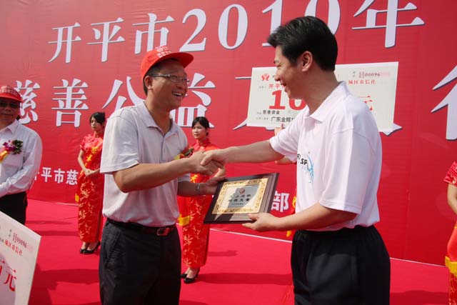 3月3日上午,2010年開平市慈善公益萬(wàn)人行活動(dòng)起步儀式在城市北廣場(chǎng)舉行。為支持慈善事業(yè),我集團(tuán)公司在慈善萬(wàn)人行活動(dòng)中向開平市慈善會(huì)捐贈(zèng)了一百萬(wàn)元,被表彰為第一批慈善事業(yè)突出貢獻(xiàn)的先進(jìn)單位。